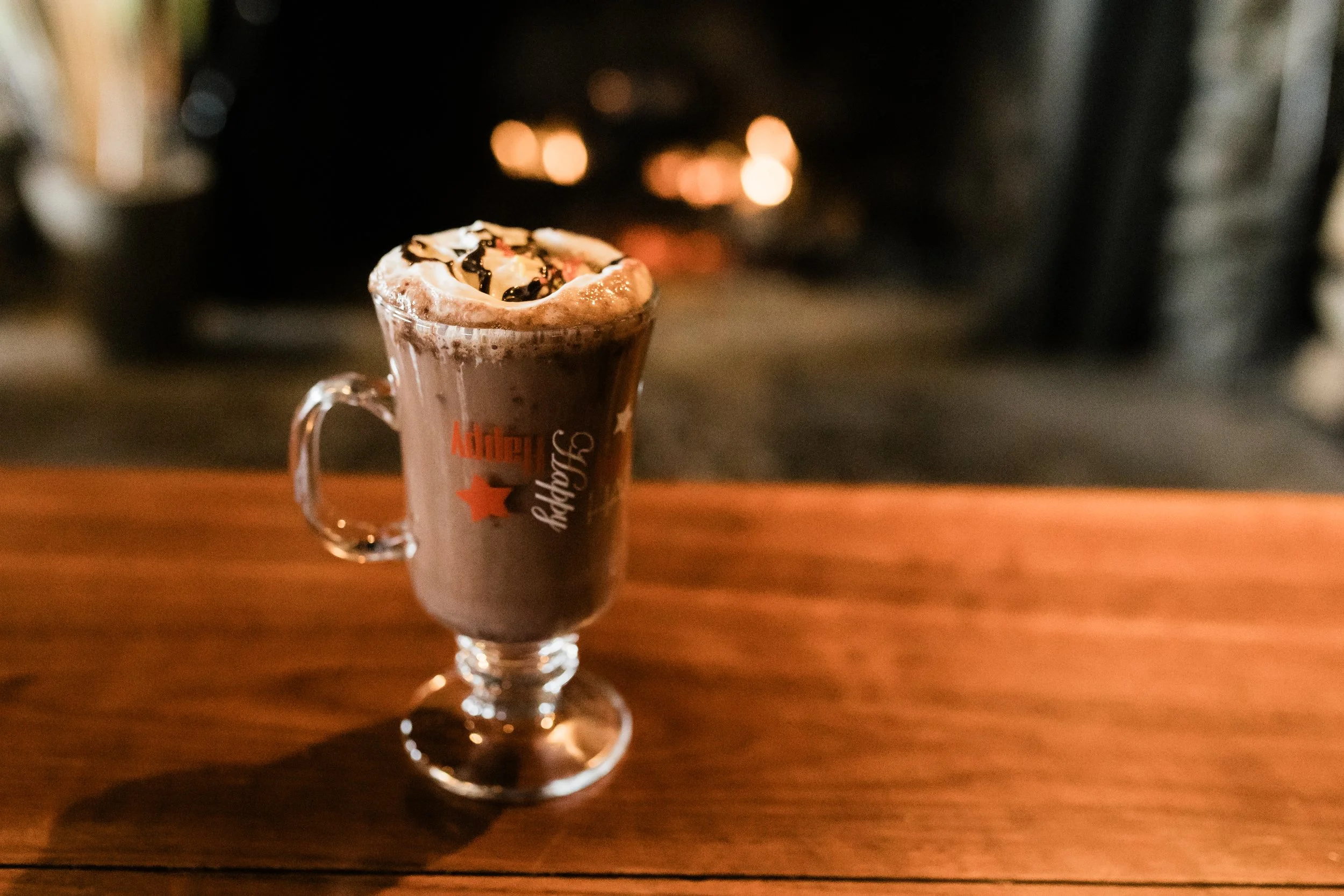 Get cozy with a cup of hot cocoa, complete with all the classic toppings and a touch of extra cheer.